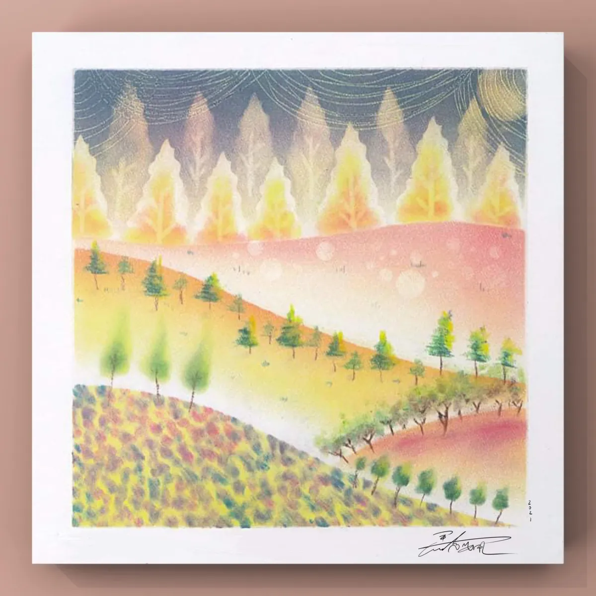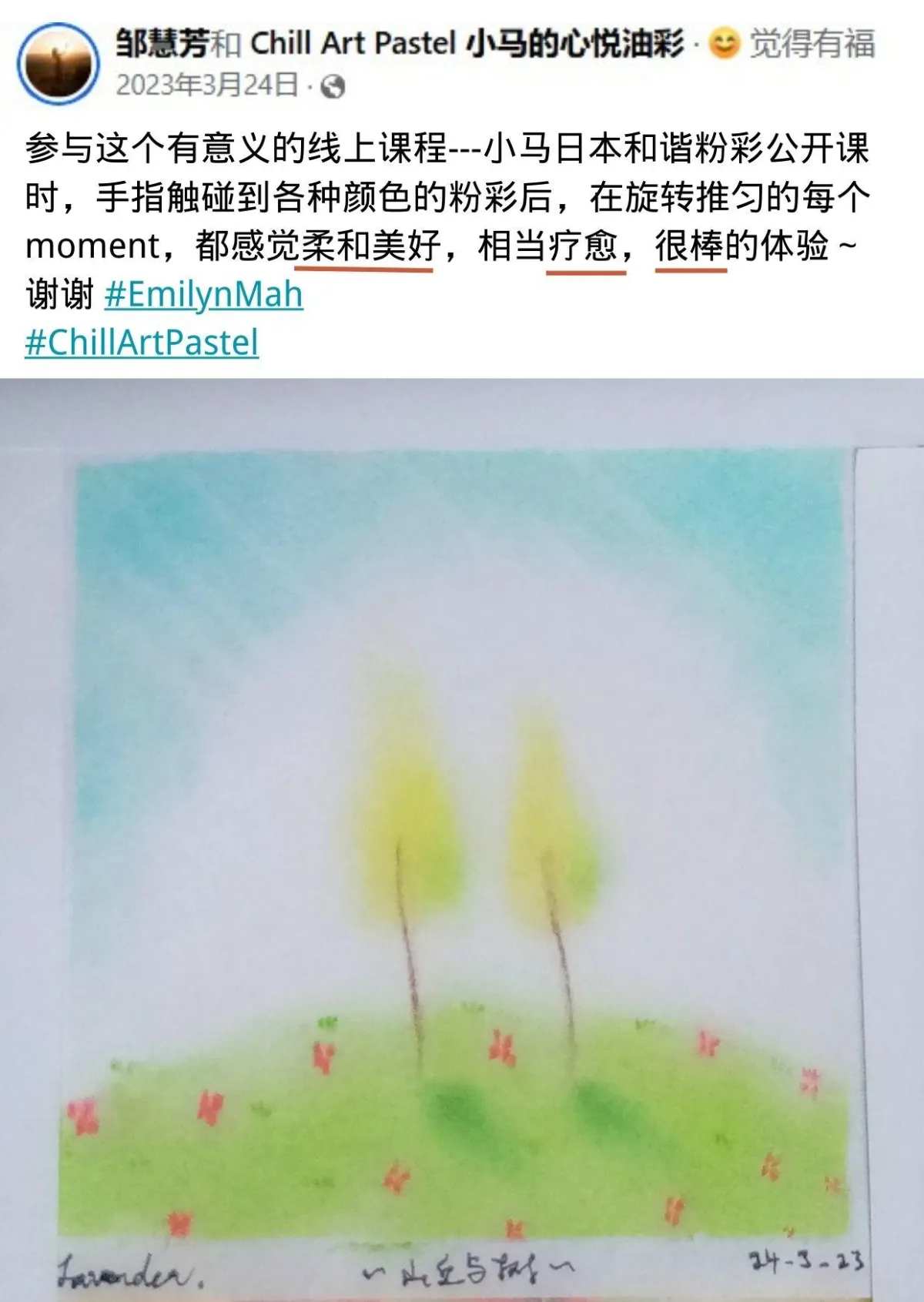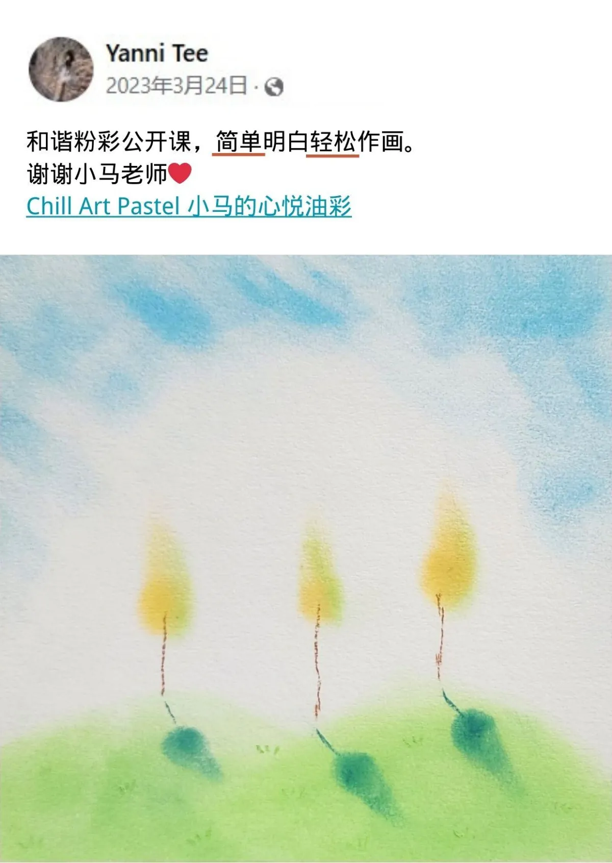收获一张治愈系粉彩画作品。